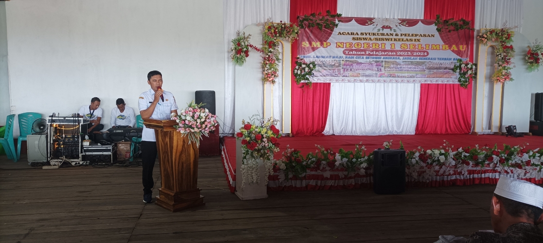 Ramli, S.Kep., M.A.P. Sekcam Selimbau menghadiri undangan Perpisahan Penyerahan siswa-siswi IX Sekolah Menengah Pertama Negeri 1 Selimbau Tahun Pelajaran 2023/2024